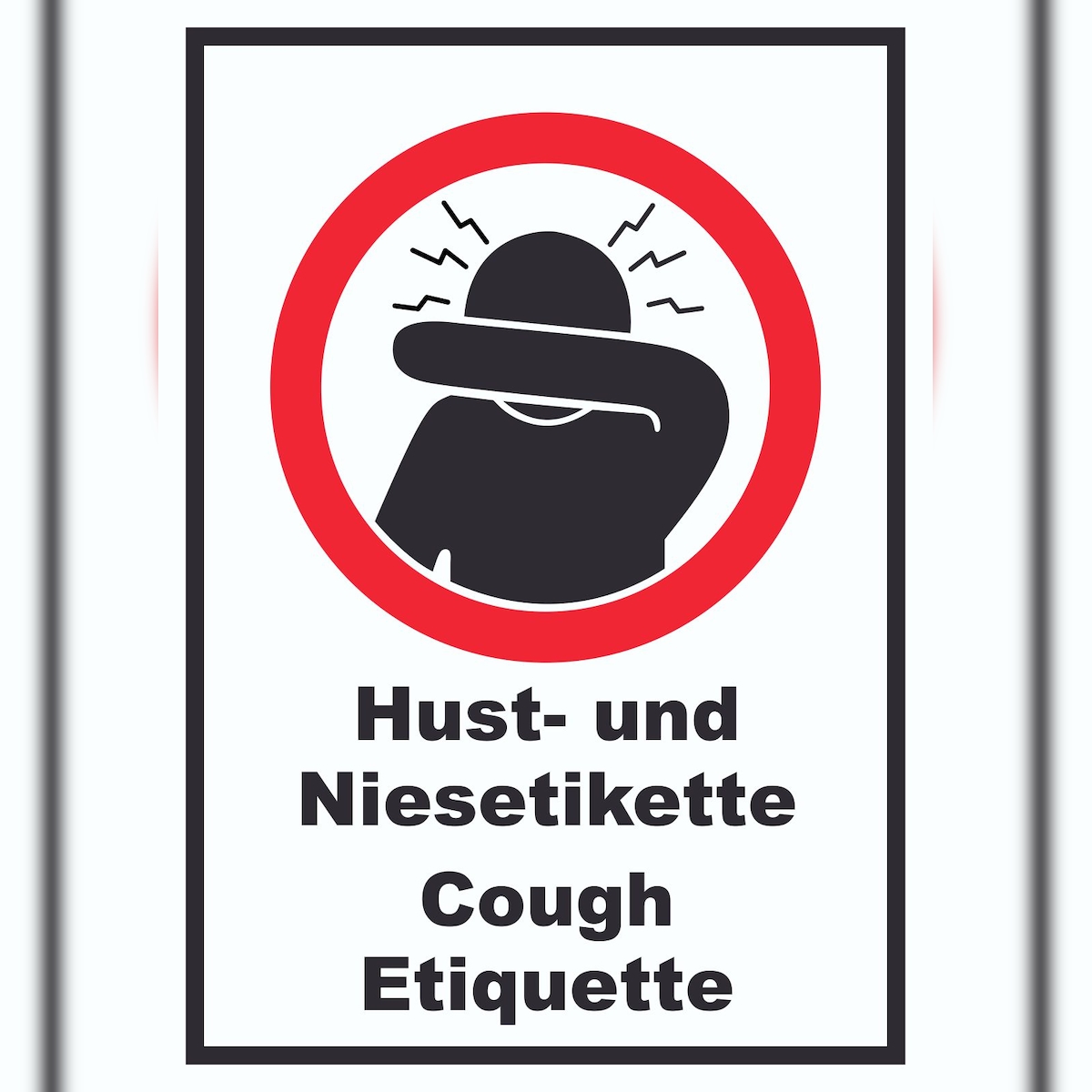 HB-Druck Husten und Niesetikette beachten Cough Etiquette Symbol und Text Schild A6 (105x148mm)