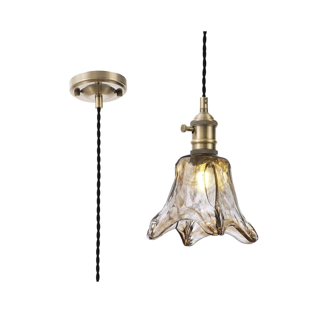 Alaskan Switched Pendant 1.5m 1xE27 Antique Brass / Black Twisted Cable / Brown Flower Glass Luxuria