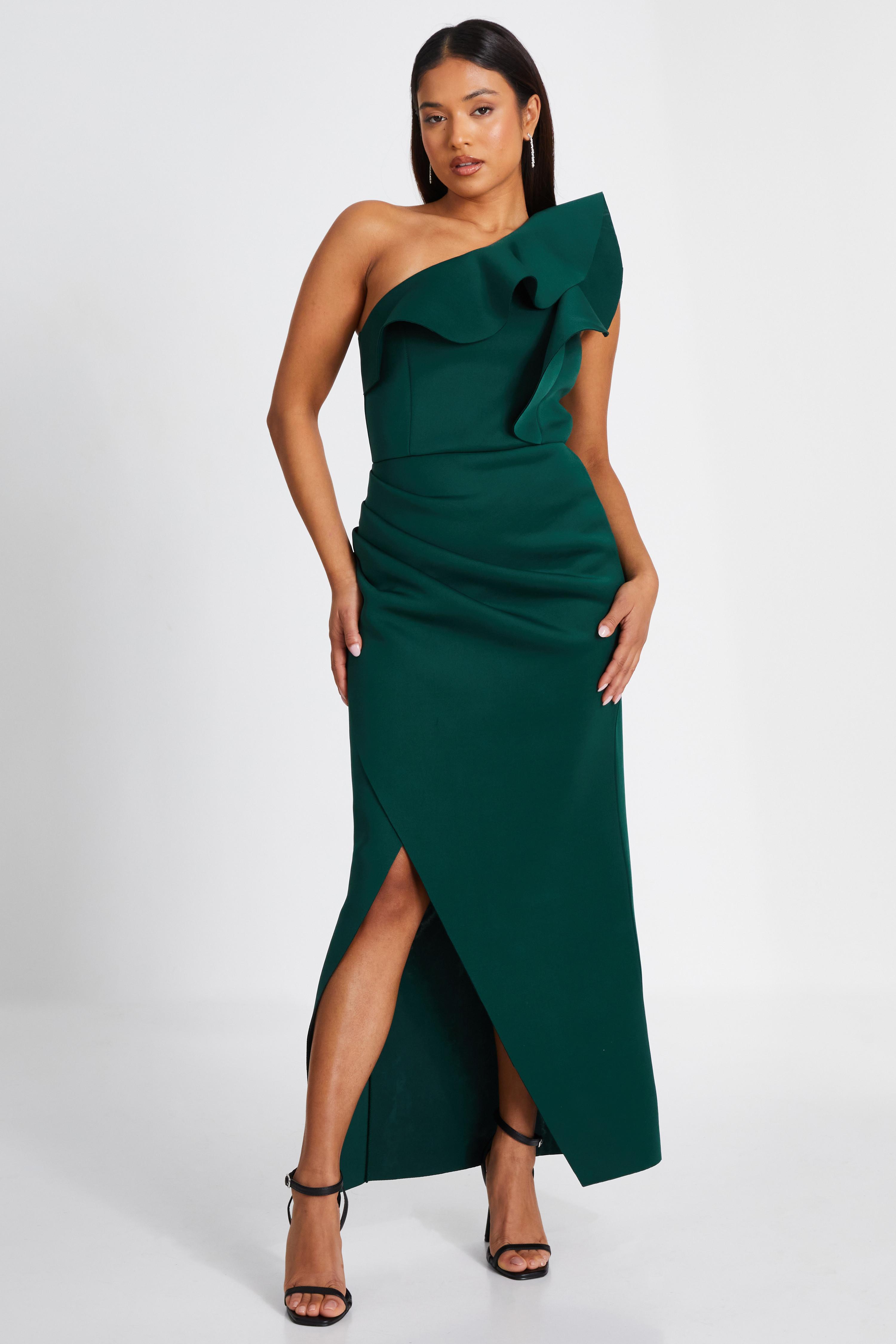 Oasis Womens Satin Twist Front Angel Sleeve Midi Bridesmaids Dress - Green - Size 8 UK | Oasis Sale | Discount Designer Brands