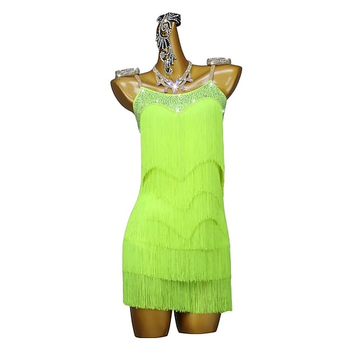 ballo salsa vestito da ballo latino nappe con frange cristalli/strass performance da donna senza maniche in spandex naturale