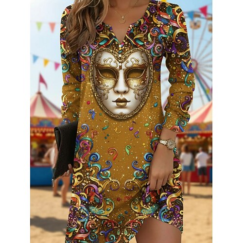 Per donna Abito Lungo Maxi Abito Vestito Casual Vestito T-Shirt Moda Essenziale Moderno Quotidiano All'aperto Vacanza Vestibilità regolare Grafico Manica Lunga Scollo a V Giallo Chiaro Giallo