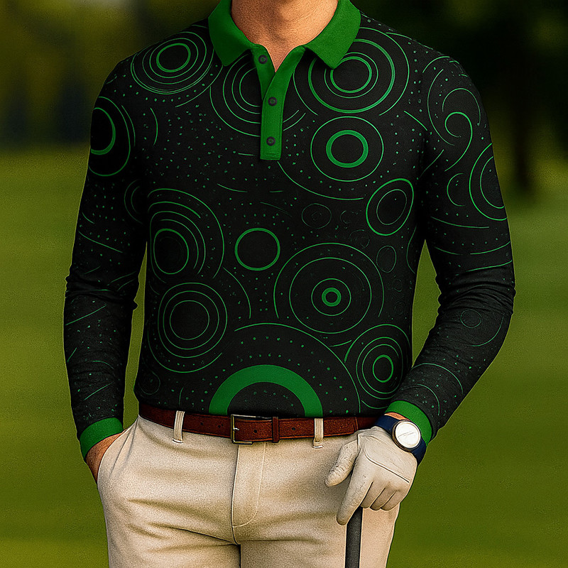 Men's Geometic Golf Polo Long Sleeve Polo Shirts Lapel Casual Outdoor Street Athleisure Daily Wear 3D Print Buttons Spring Fall Winter White Blue Green
