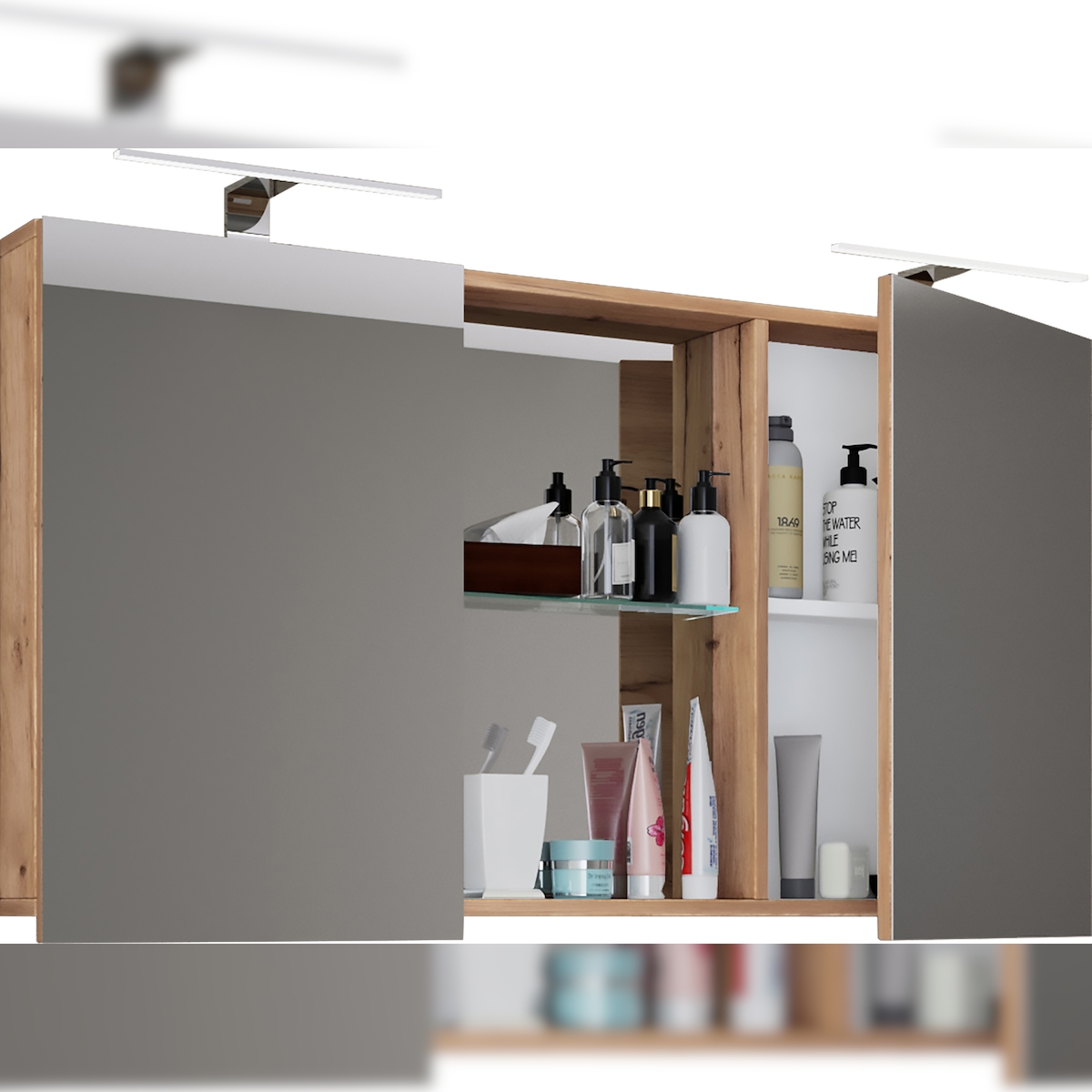 VCM Badmöbel Spiegelschrank Budasi Honig-Eiche H. 59 x B. 112 cm T. 12 cm