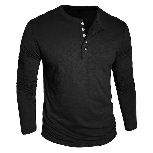 Per uomo Maglia Henley Maglietta Maglietta 100% cotone Manica Lunga Tinta unica Semplice Tinta unita Moda Designer Casual Bottoni Henley Casuale Quotidiano All'aperto Estate Primavera Autunno Nero