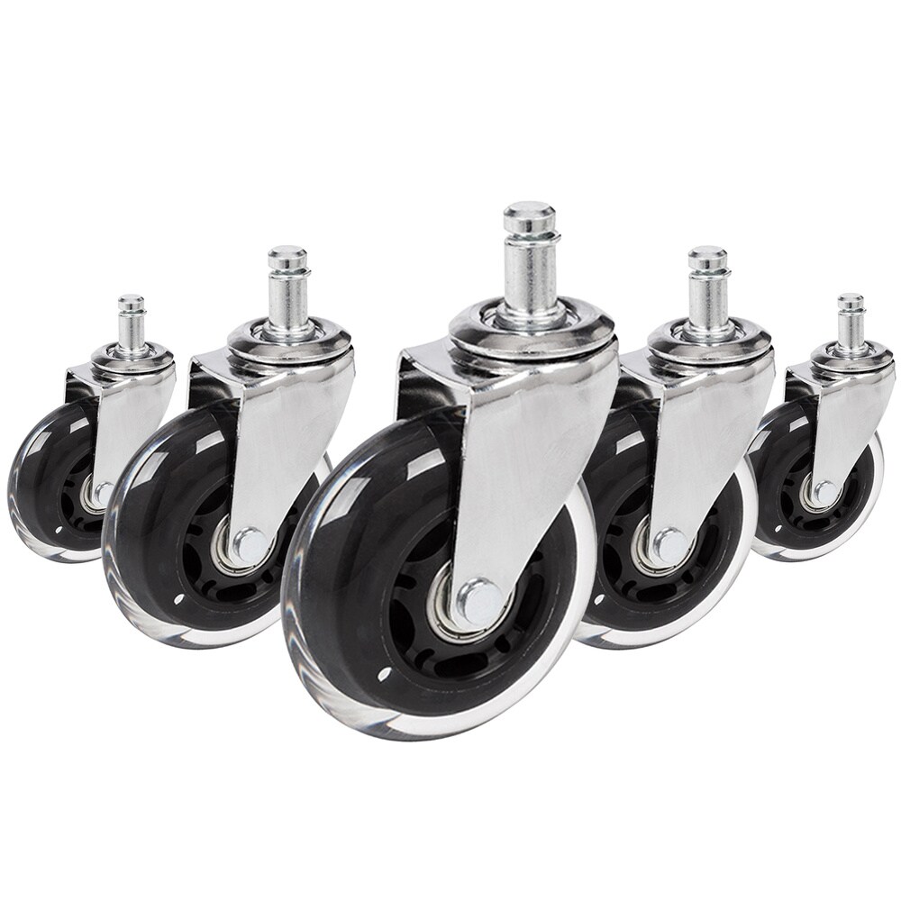 hjh OFFICE 5x Hartbodenrollen ROLO SKATE 11mm / 75 mm Büro-Stuhl-Rollen Chrom transparent (5er Pack)