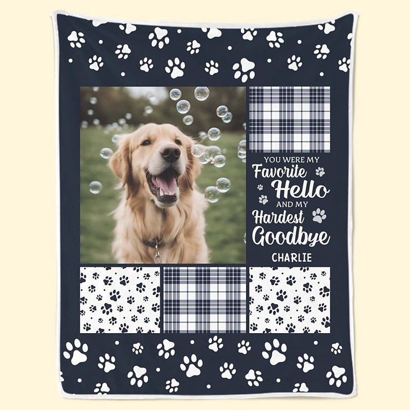 Custom Photo Blanket - Personalized Christmas Memorial Sympathy Gifts For Dogs Cats - You Were My Favorite Hello And My Hardest Goodbye