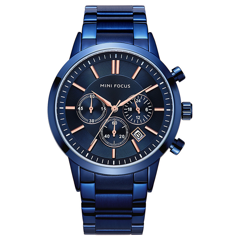 MINI FOCUS Men Quartz Watch Fashion Casual Wristwatch Calendar Waterproof World Time Decoration Steel Watch