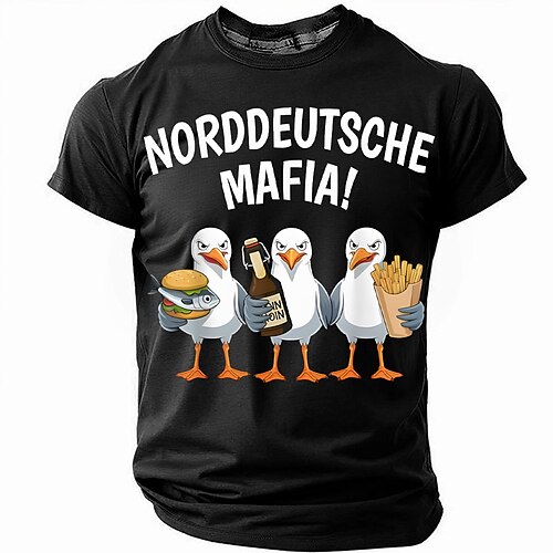 T-Shirt Divertente da Uomo Mafia del Nord Tedesco Gabbiano Grafica a Maniche Corte Gioco di Parole e Umorismo