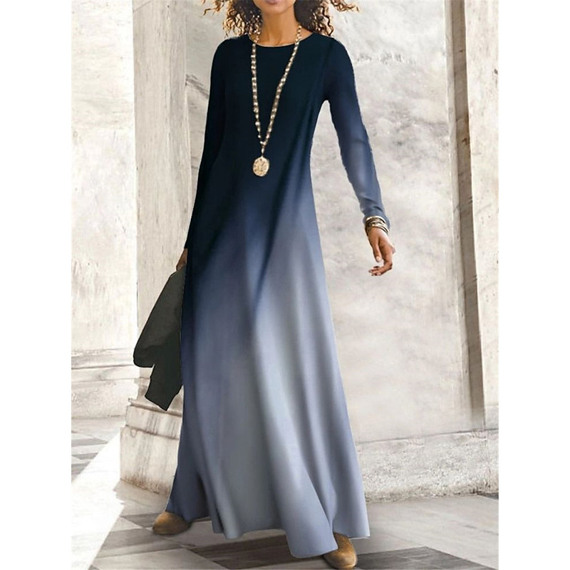 Women's Maxi Dress Vintage Bohemian A Line Dress Crew Neck Long Sleeve Casual Winter Dress Shift Dress Fashion Modern Mature Outdoor Daily Date Regular Fit Ombre Yellow Blue Purple Khaki Fall Winter