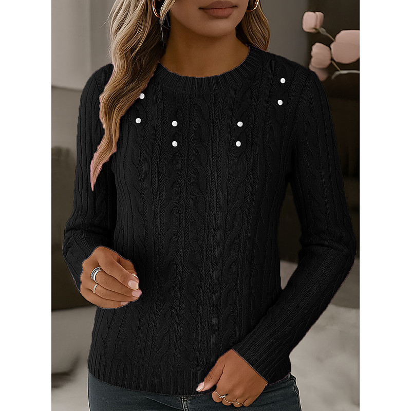 Women's Sweater Pullover Elegant Cute Casual Crew Neck Beaded Long Sleeve Regular Tops Knit Daily Date Weekend Black White Fall Winter