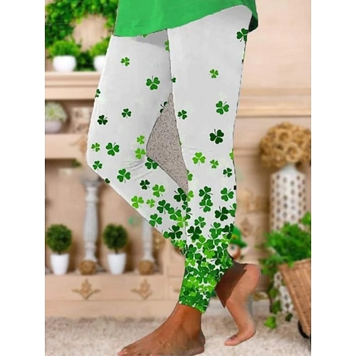 Leggings da donna per il Giorno di San Patrizio attivi vacanza moda lunghezza intera vita alta pantaloni con stampa trifoglio comfort outdoor comodi elastici festival nera verde nera bianca estate