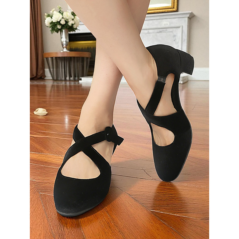 Beige Canvas Ballroom Dance Shoes for Women – Low Heel Elastic Strap Pumps for Professional Practice