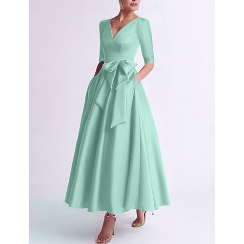 Linea ad A Lunghezza alla caviglia Vestito da Festa Abito da Cocktail Abito da invitata a nozze Abito da cerimonia per signora Manica 3/4 Scollo a V Colletto a Camicia Elegante Vintage Formale Raso