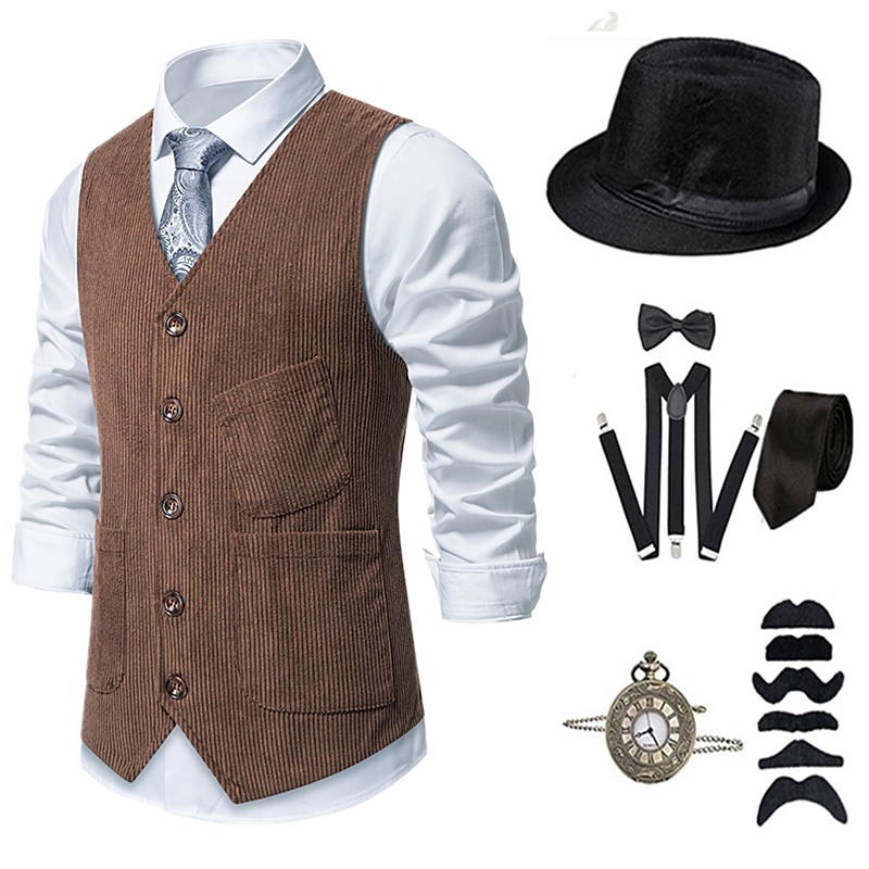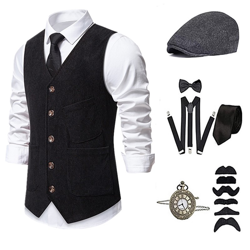 1920s Vintage Inspired The Great Gatsby Party Costume Masquerade Accessories Set Sleeveless Collarless Fancy Dress Men's Halloween Party Evening Casual Daily Adults' Vest Hat All Seasons