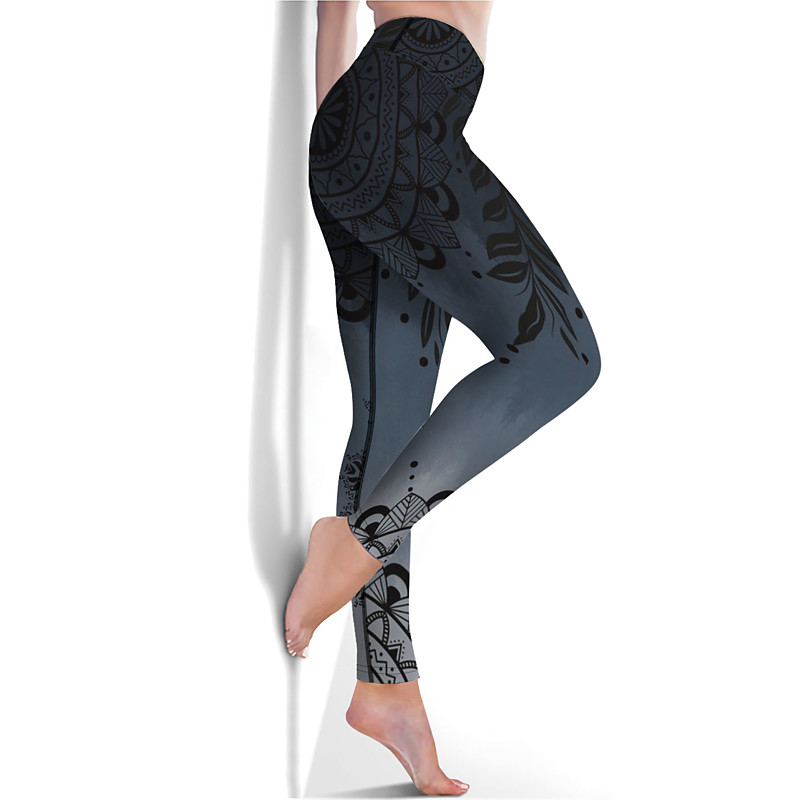 Women's Leggings Sports Gym Leggings Yoga Pants Spandex Blue Cropped Leggings Floral Tummy Control Butt Lift Clothing Clothes Yoga Fitness Gym Workout Running / High Elasticity / Athletic