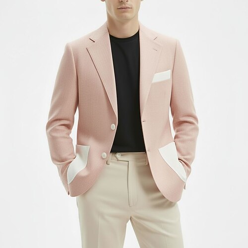 Per uomo Giacca blazer Colletto ad incastro Moda Leggero Casual Patchwork Blazer Rosa Azzurro cielo Verde salvia Vestibilità su misura Monopetto Due Bottoni