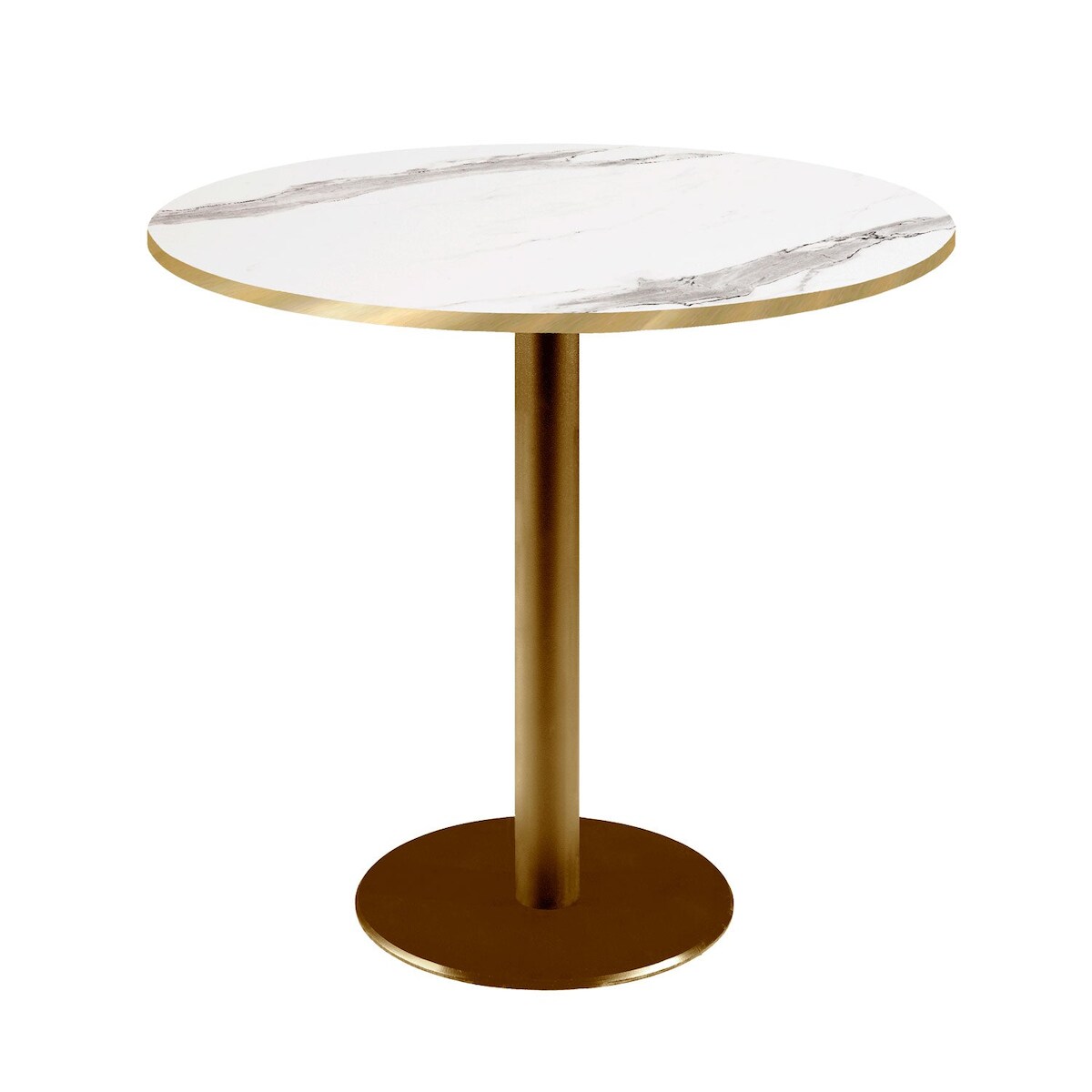 Restootab Tisch Rome goldmetallic Ø70cm - Modell weißer Marmor mit messingfarbenen Kanten