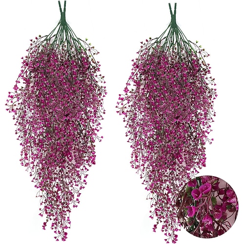 4 künstliche Hängepflanzen aus UV-beständigem Kunststoff mit Ranken, Blättern und Blumen zur Wanddekoration für den Frühling, drinnen und draußen, Schlafzimmer und Wohnung.