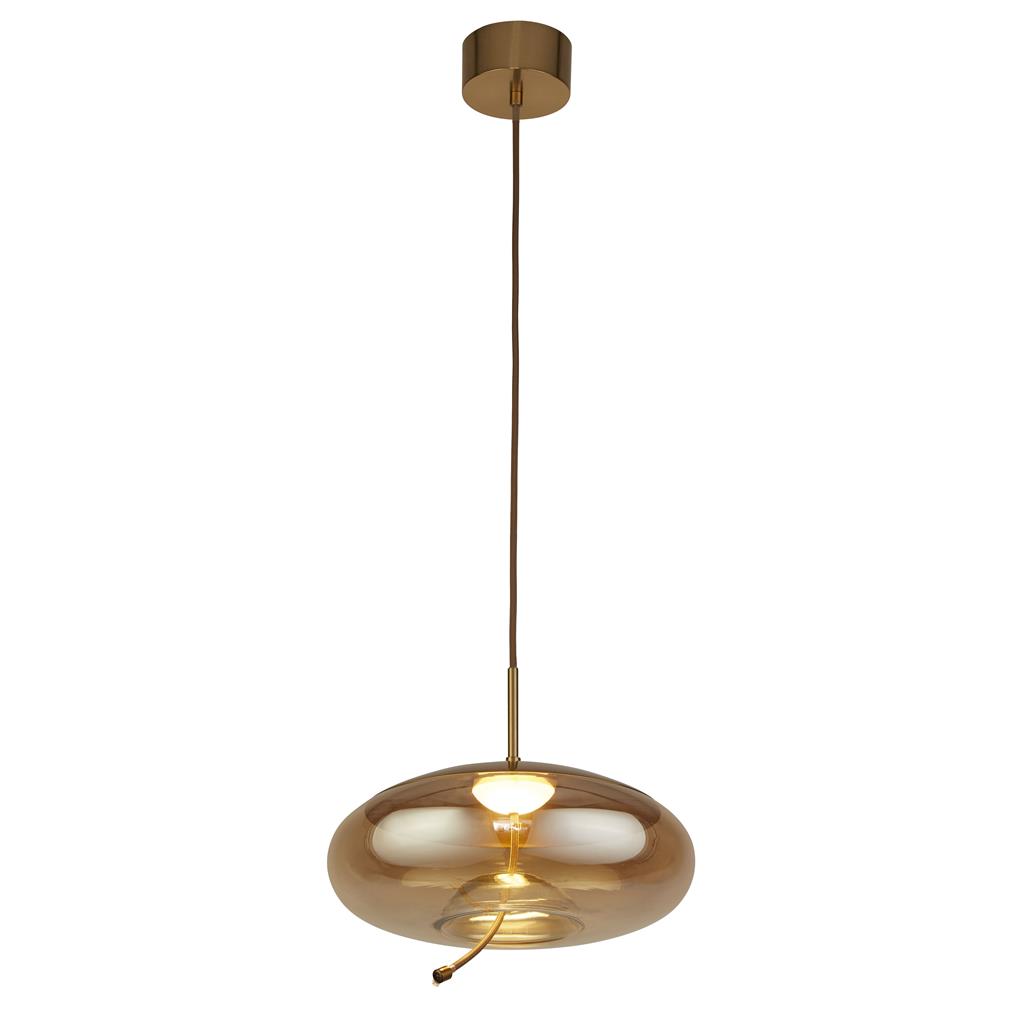 Searchlight Lisbon - lampe suspendue - Ø 31 x 150 cm - 6W LED inclus - laiton satiné et ambre