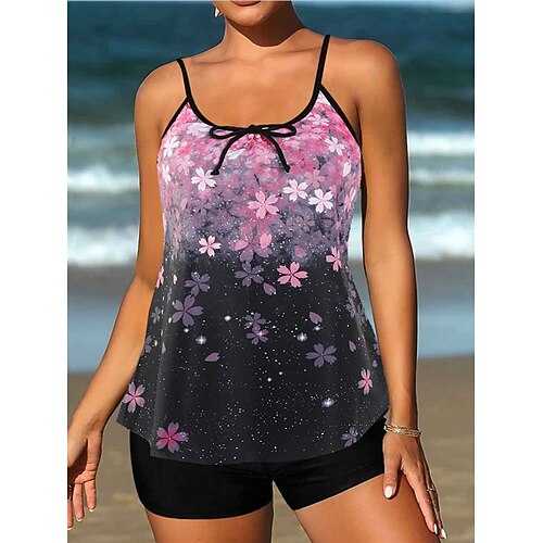 Costume da bagno due pezzi Tankini da donna Boho Pantaloni Corti Controllo della pancia Alta vita Slim Senza schienale Abbigliamento da spiaggia in vacanza Paisley Collo a U Senza maniche