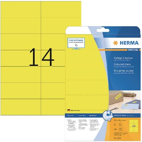 HERMA Multifunktionsetiketten SuperPrint DIN A4 Gelb Rechteckig 105 x 42,3 mm Rechteckig 280 Etiketten pro Packung
