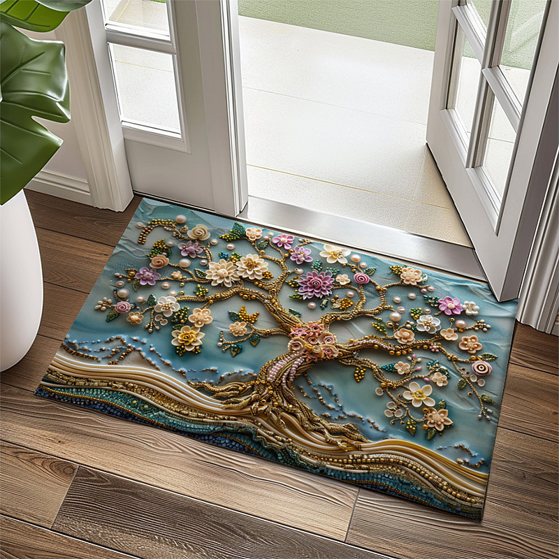 Purple Sparkling Tree of Life Doormat Floor Mats Washable Rugs Kitchen Mat Non-Slip Oil Proof Rug Indoor Outdoor Mat Bedroom Decor Bathroom Mat Entrance Rug