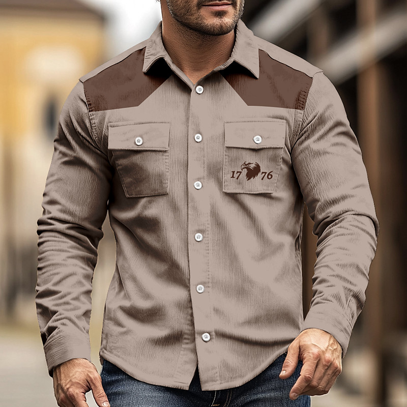 Men's Color Block Letter Printed 1776 Corduroy Shirt Western Shirt Shirt Jacket Long Sleeve Vintage Retro Outdoor WorkWear Fall Winter Turndown 3D Print Cowboy Shirts Jacket with Flap Pockets Saddle