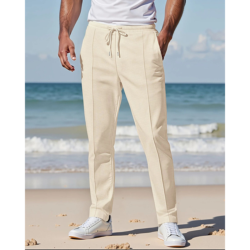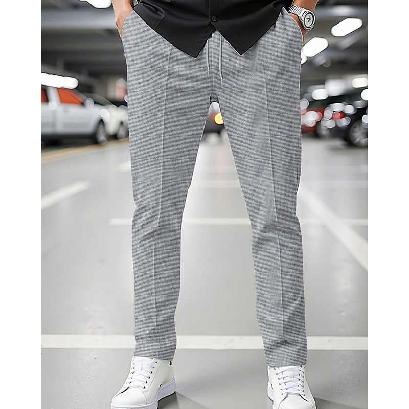 Men's Sweatpants Trousers Pleated Pants Waffle Pants Pocket Elastic Waist Drawstring Plain Comfort Sports Outdoor Daily Fashion Casual Black White Micro-elastic