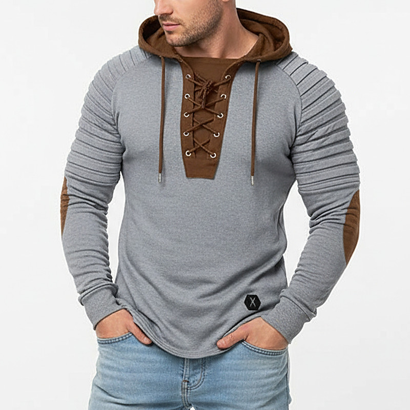 Men T Shirt Tee Top Long Sleeve Shirt Shirts With Elbow Patches Long Sleeve Hooded All Seasons Color Block Slim Pleated Fashion Designer Basic Lace up Patchwork Casual Vacation Street Black khaki