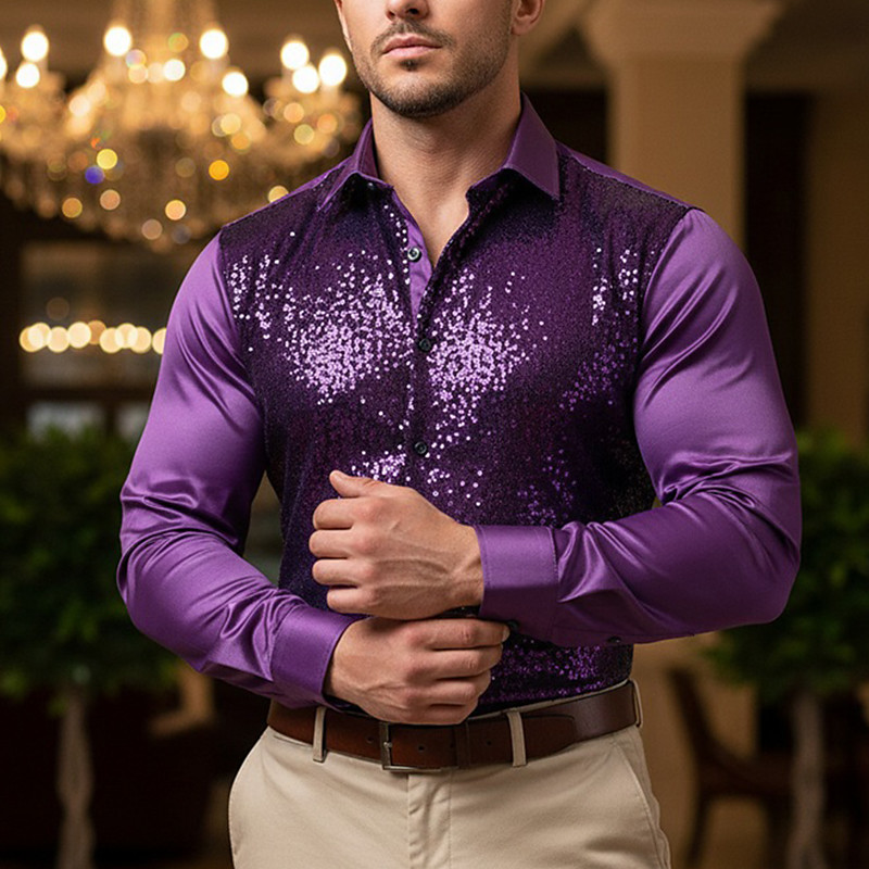 Men's Shirt Satin Shirt Dress Shirt Casual Shirt Button Up Shirt Prom Shirt Plain Wedding Party Silver Pink Red Blue Long Sleeve Lapel Spring All Seasons Clothing Apparel