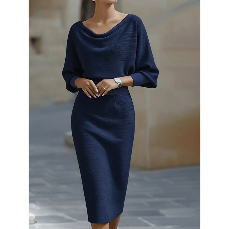 Women's Midi Dress Bodycon Dress Work Dresses Semi Formal Office Regular Fit Plain 3/4 Length Sleeve Boat Neck Black White Navy Blue Gray Summer Spring Fall