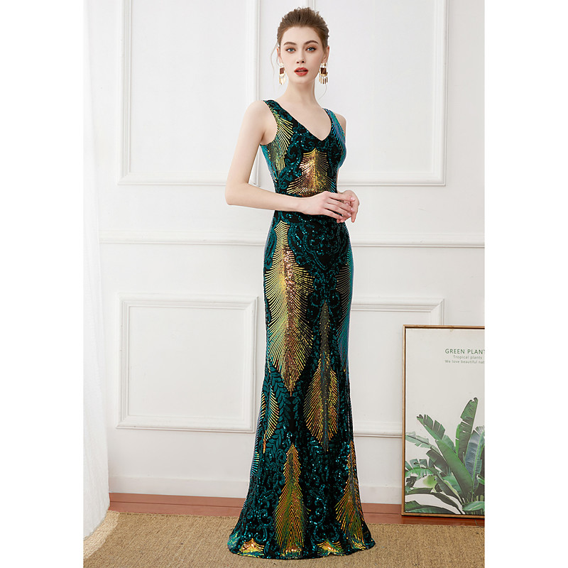 Roaring 20s 1920s Cocktail Dress Floor Length Dress Party Costume Prom Dress Sleeveless The Great Gatsby Sequin V Neck Fancy Dress Women's Christmas New Year Wedding Party Evening Party Adults Dress