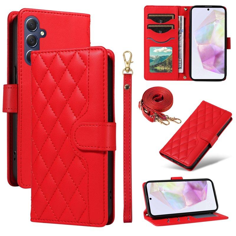 Rhombus Samsung Galaxy A35 5G Fodral Äkta Läder - Röd