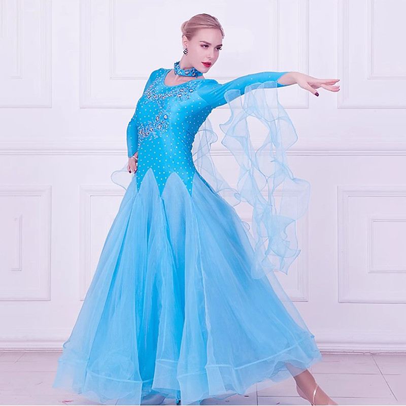 Ballroom Dance Dress Splicing Crystals / Rhinestones Women's Performance Party Long Sleeve Spandex Organza