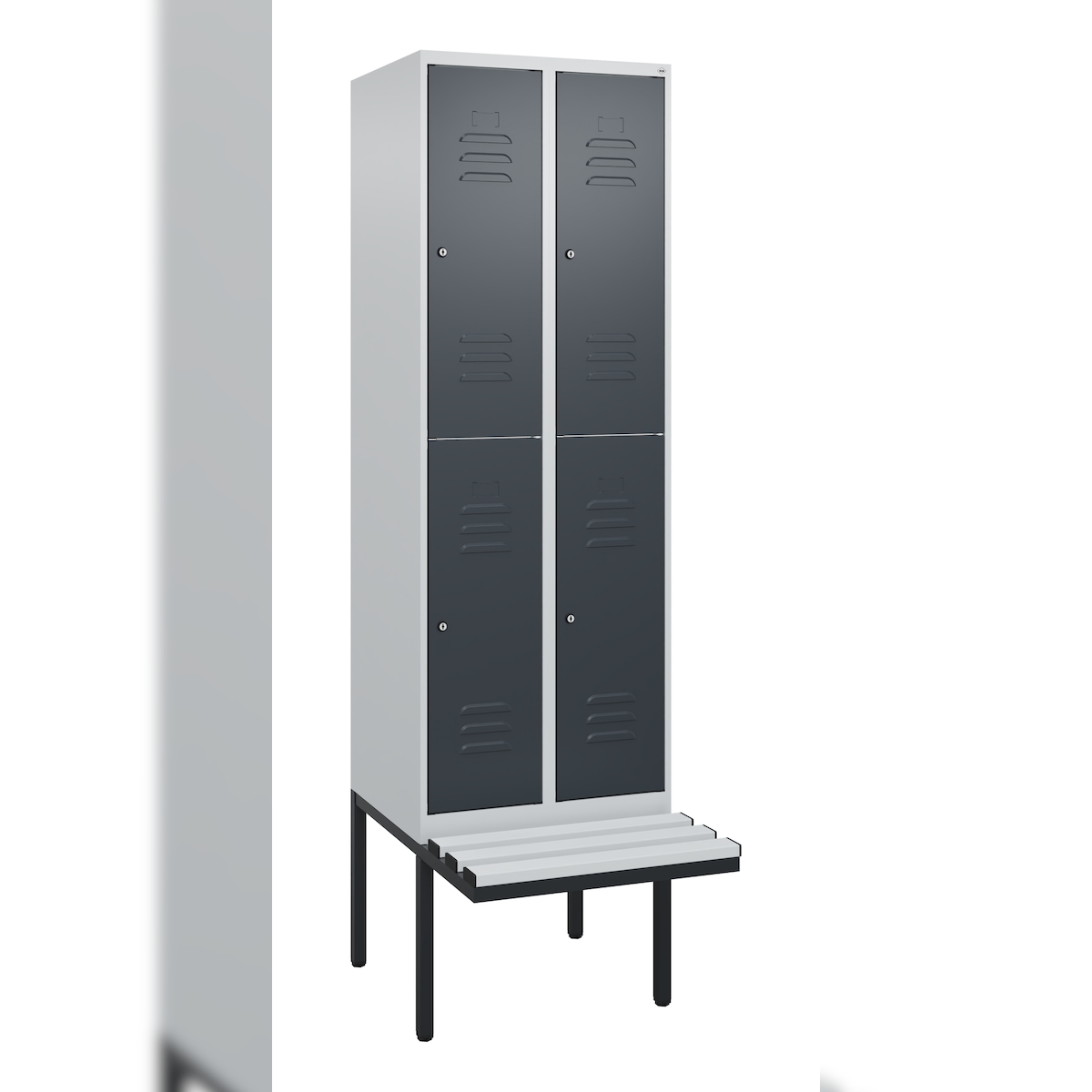 C+P Doppel-Spind Classic PLUS, schwebender Sitzbank aus Buche 4 Abteile, HxBxT 212x120x82cm, Zylinderschloss, Hellgrau/Anthrazit von PROREGAL
