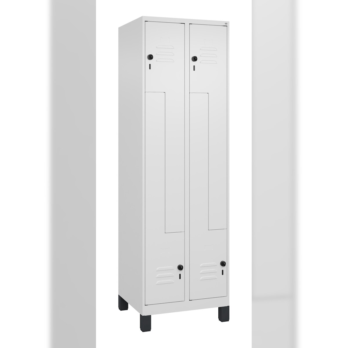 C+P Spind Classic PLUS, Füßen, 2 Abteile, HxBxT 195x80x50cm, Sicherheitsdrehriegel, Hellgrau/Fernblau von PROREGAL