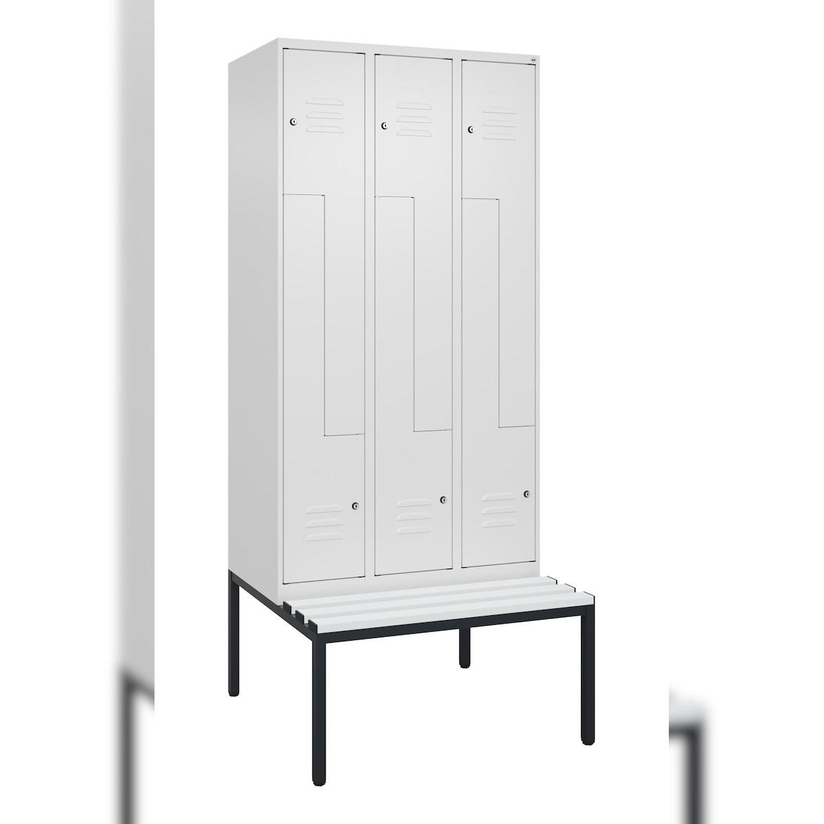 C+P Z-Spind Classic PLUS, schwebender Sitzbank aus Buche 6 Abteile, HxBxT 212x90x82cm, Sicherheitsdrehriegel, Hellgrau/Hellgrau von PROREGAL