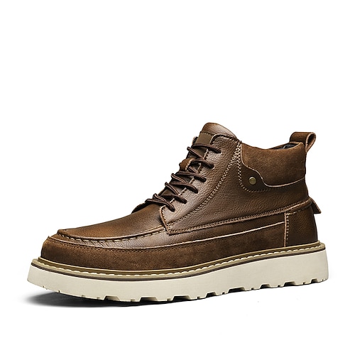 stivali marroni con lacci da uomo – stivaletti in pelle di ispirazione vintage con suola resistente per uso casual da lavoro, da viaggio e all'aperto