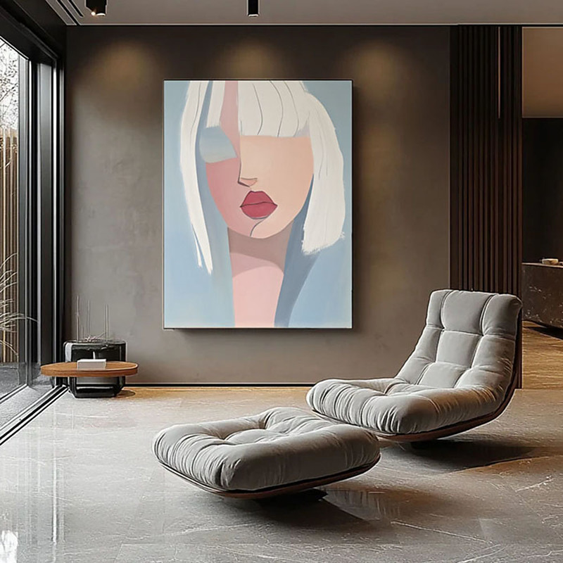 Large Pretty Girl Abstract Wall Art Colorful Pretty Lady Textured Painting Beautiful Girl Canvas Art Textured Abstract Wall Art for Modern Home Decor