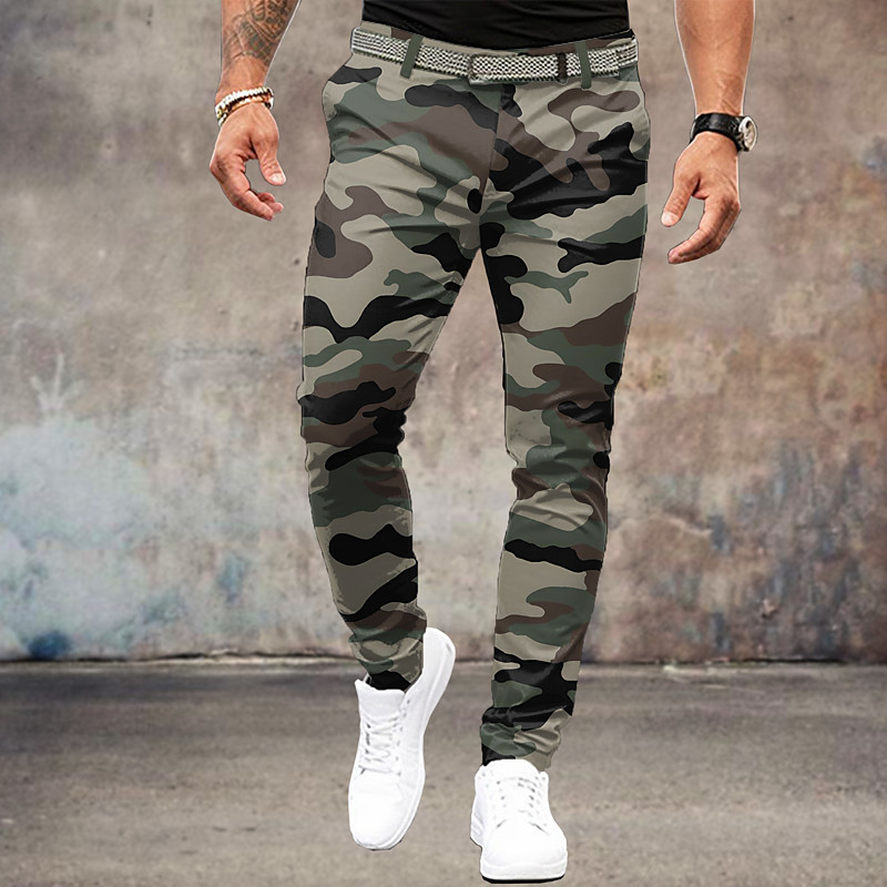 Men's Camo / Camouflage Dress Pants Mid Waist Vintage Formal Outdoor Street Zipper Pocket Summer Spring Fall 3D Print Navy Blue Army Green