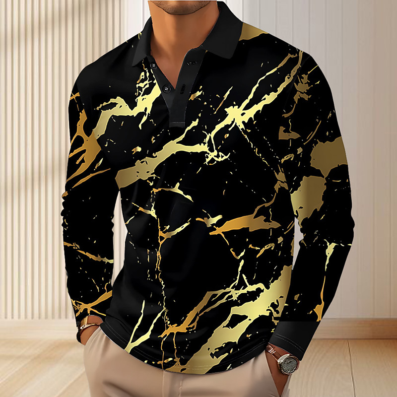 Men's Abstract Geometic Polo Long Sleeve Polo Shirts Lapel Casual Outdoor Street Athleisure Daily Wear 3D Print Buttons Spring Fall Winter Blue Gold Green