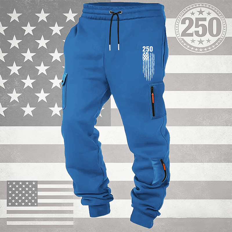 Men's Cargo Sweatpants Sweatpants Joggers Trousers Drawstring Pocket Elastic Waist National Flag Comfort Breathable Daily Outdoor America's 250th Anniversary Vacation Fashion Black White Micro-elastic