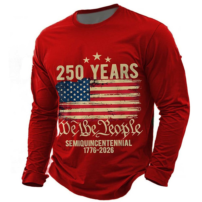 America's 250th Anniversary Men's American US Flag T Shirt Long Sleeve T shirt 3D Print Crew Neck Shirt Daily Casual Daily Travel Party Blue Black Red Summer Spring Fall Clothing Apparel S M L XL XXL