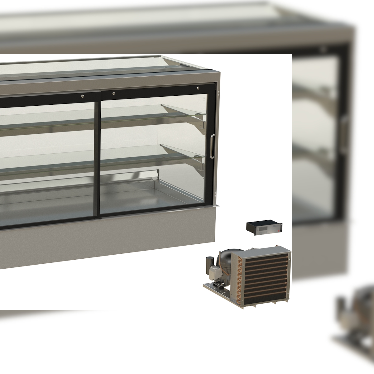 HAGOLA Showcase "Bergen" eckig, für 4x GN 1/1, 3 Auslagen 20mm Tiefe, 1410x710/200x710mm (BxHxT) steckerfertig mit Schnellkupplung