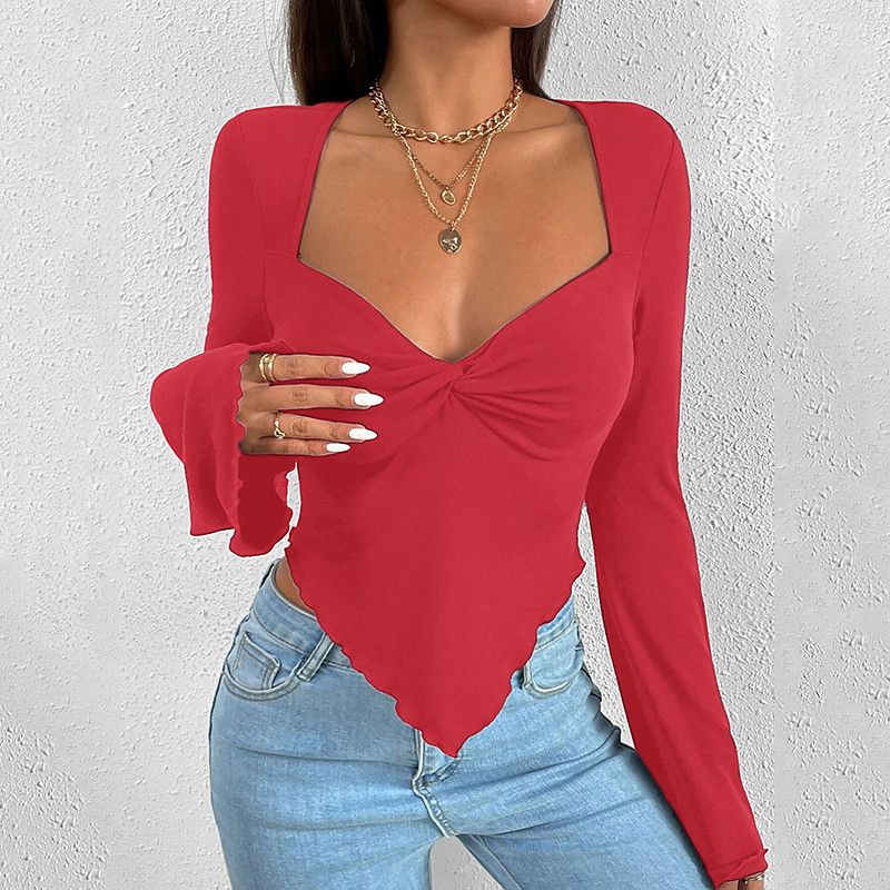 Women's Blouse Plain Elegant Vintage Tropical Long Sleeve Bell Sleeve V Neck Regular Tops Daily Holiday Going out Tunic Asymmetric Black White Red Blue Spring Fall