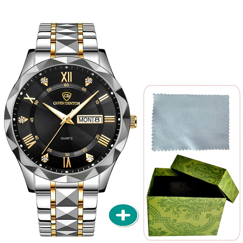 Fashionable Men's Quartz Watch Rhombus Digital Dial Dual Calendar Luminous Waterproof Steel Strip Watch Rhinestone Decoration Watch Business Watch Gift Preferred