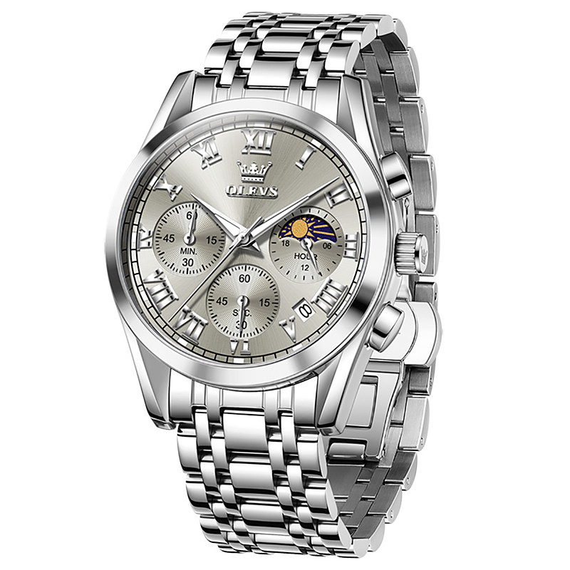 The New Olevs Men'S Business Watch With Luminous Calendar Small Three-Hand Moon Phase Display Multi-Functional Quartz Watch Waterproof Casual And Fashionable Men'S Sports Wristwatch