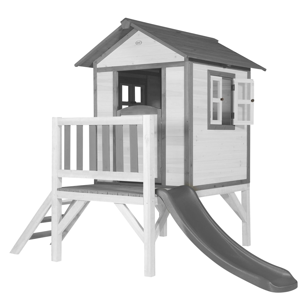Casetta per bambini con scivolo grigio in legno FSC, bianco