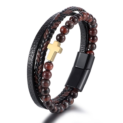 Bracciale da uomo con chiusura magnetica: design in pietra naturale e similpelle, elegante e resistente, perfetto per l'uso casual e quotidiano.