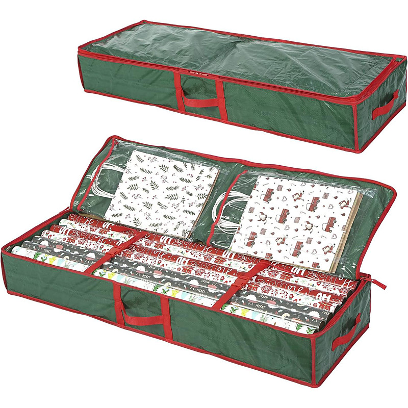 Underbed Christmas Gift Wrap Organizer,Gift Wrapping Paper Storage Container,Holds up to 20 Rolls,41W x 14D x 5.5H (Green)